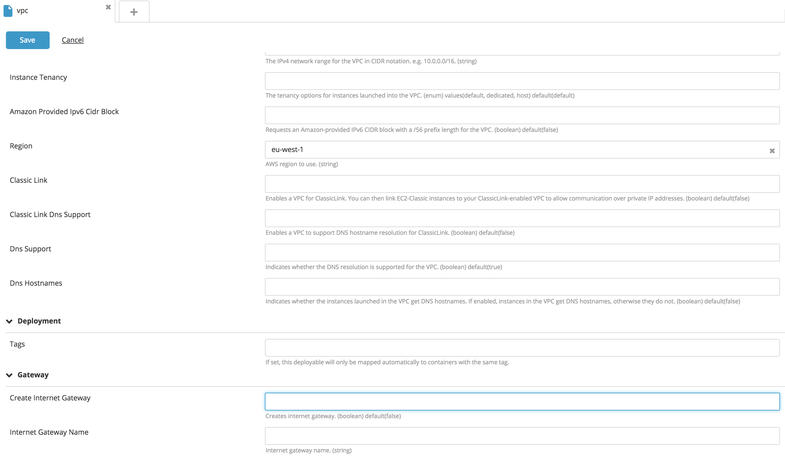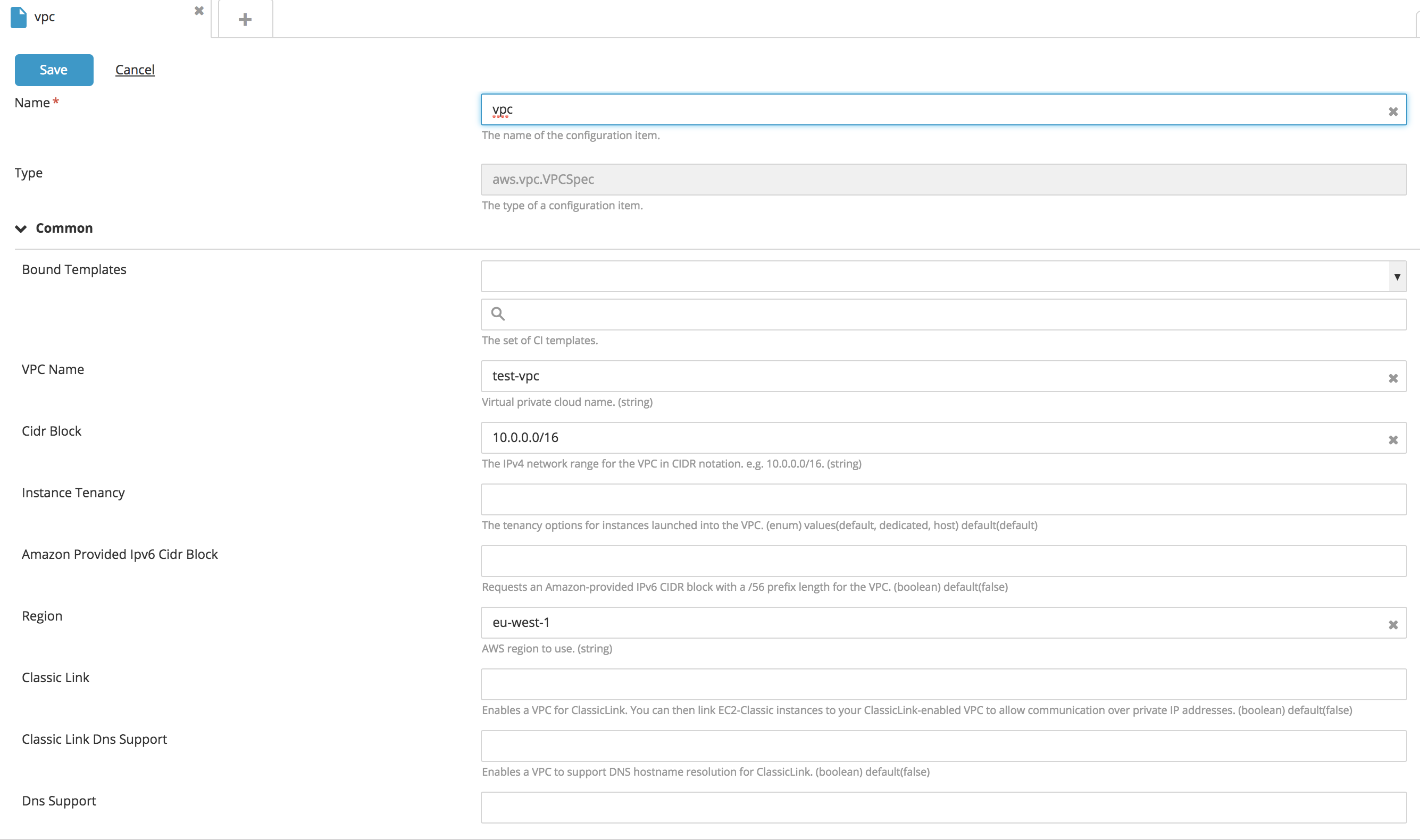 Create a VPC type CI