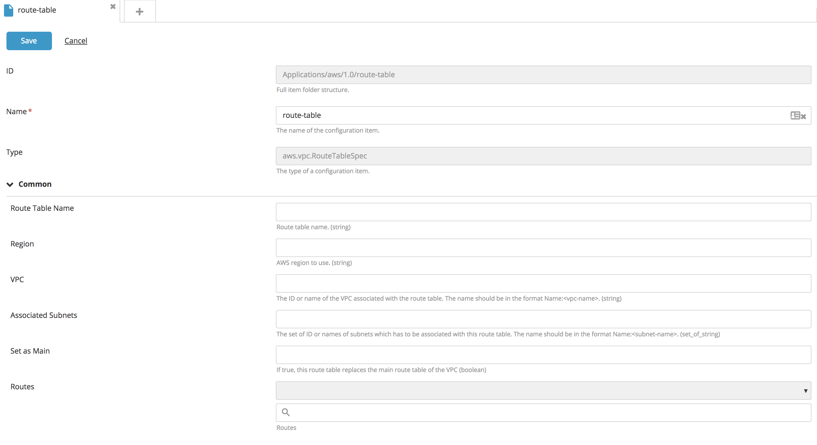 Create a RouteTableSpec type CI