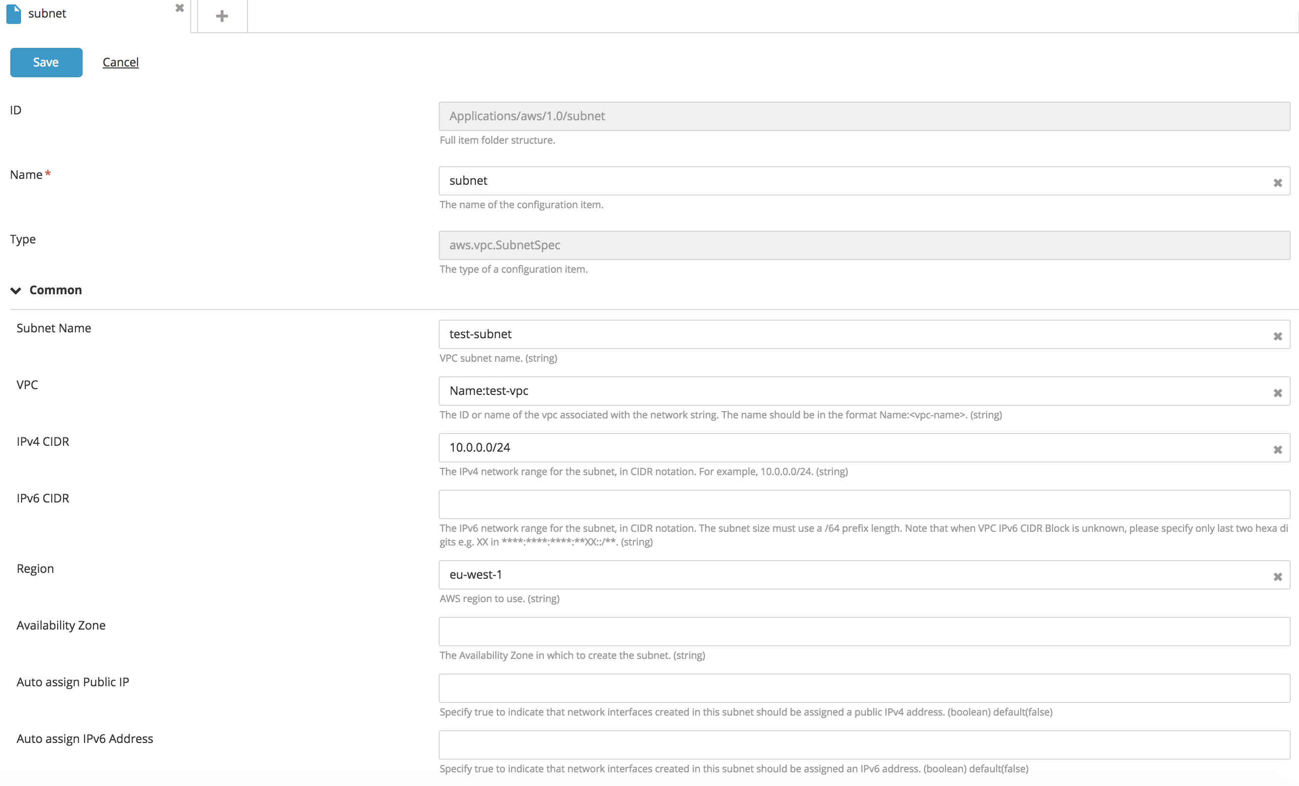 Create a SubnetSpec type CI