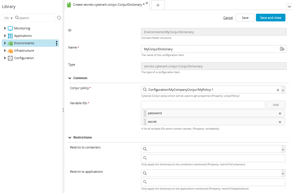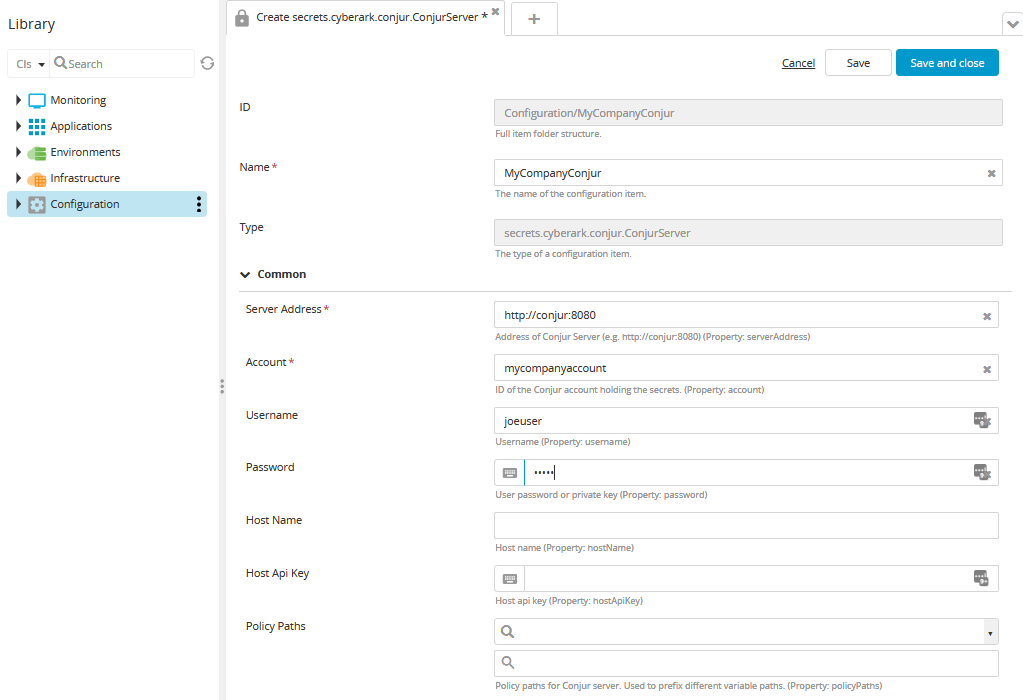 CyberArk Conjur is an open-source secrets management solution that allows applications to securely authenticate, control, and audit non-human access to sensitive information across tools, applications, containers, and cloud environments. The Conjur integration for the Digital.ai DevOps Products makes it easy to automatically retrieve passwords, API keys, and other secrets for environment provisioning and application deployment.
