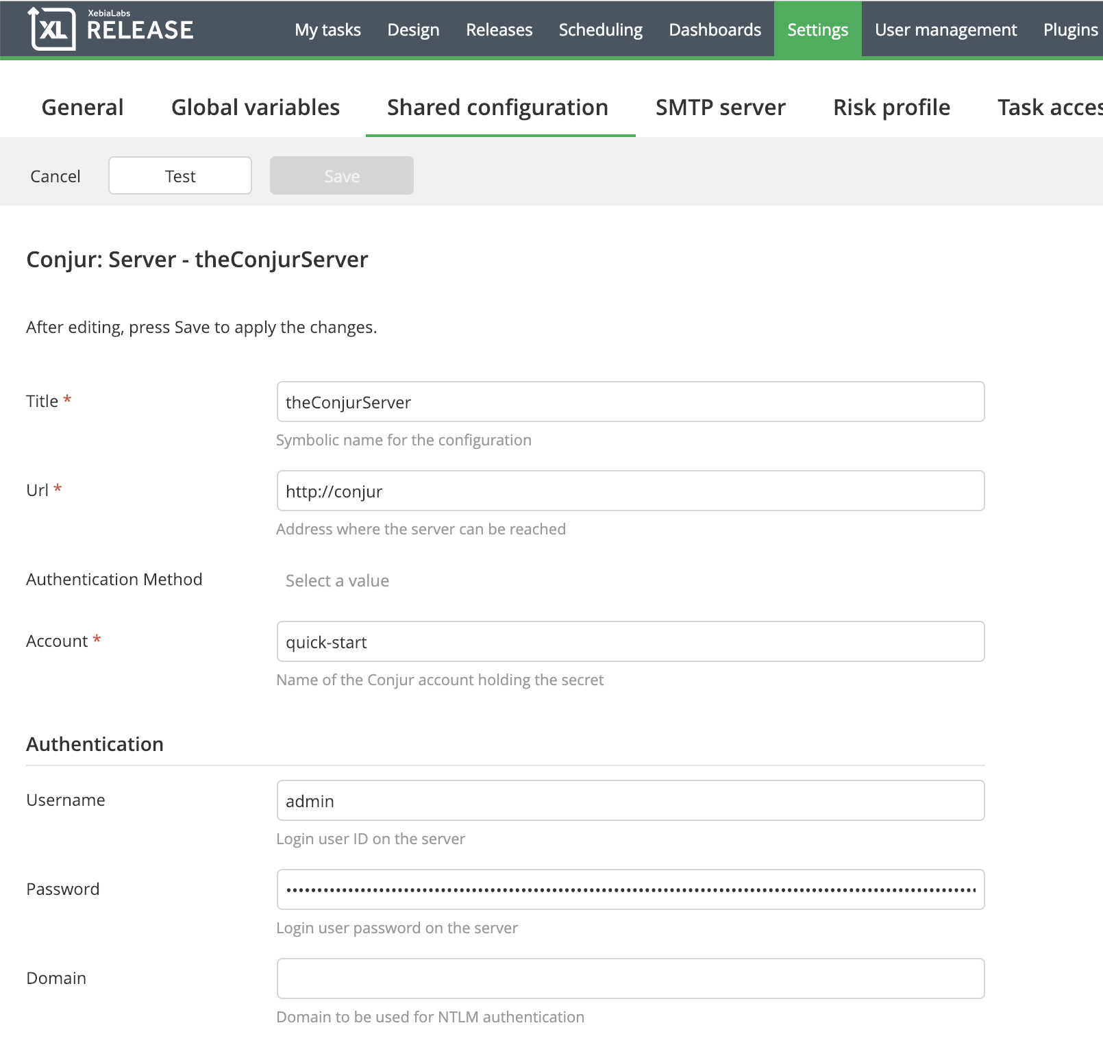 The Digital.ai Release Conjur integration provides the ability to populate a release variable with secret retrieved from a Conjur server. The release variable can then be used by subsequent tasks in the release.