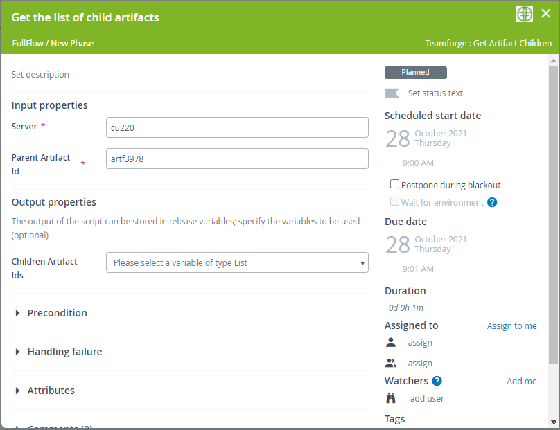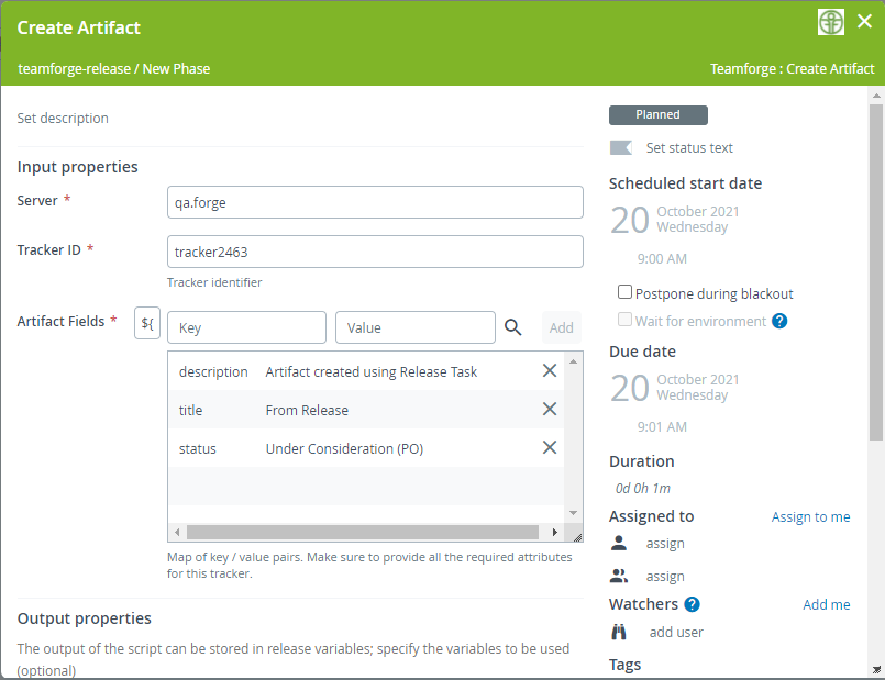 teamforge.CreateArtifact: Creates new artifacts in Digital.ai TeamForge