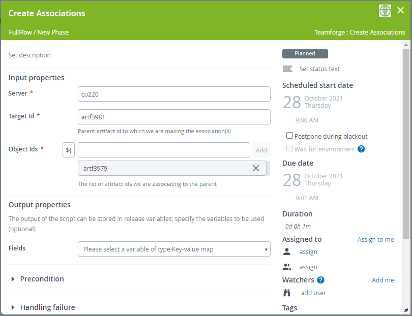 teamforge.CreateAssociations: Associates one or more artifacts with a target artifact in Digital.ai TeamForge