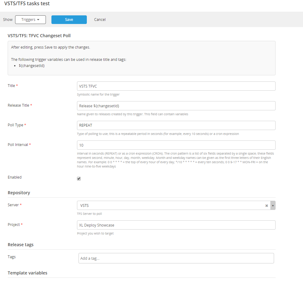 vsts.TfvcChangesetTrigger: If you want your release to be created and started by a new changeset in a TFVC repository, you must setup this trigger
