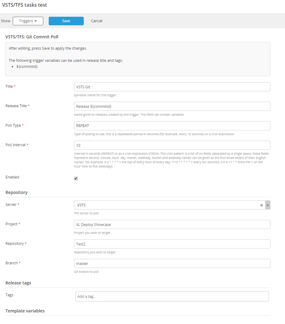 vsts.GitCommitTrigger: If you want your release to be created and started by a commit in a VSTS/TFS Git repository, you can setup this trigger